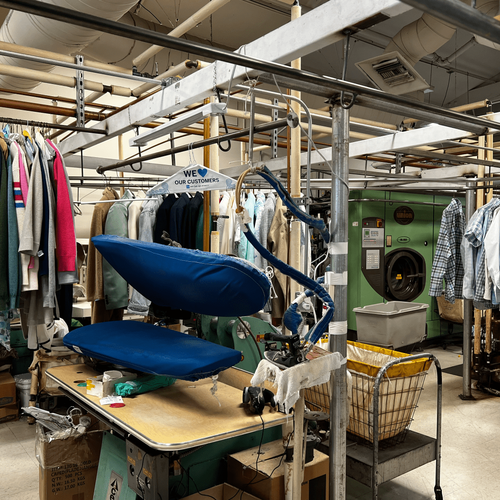 Each garment is carefully inspected with extra attention given to stain removal, button protection, and minor repairs. Each piece is hand finished and pressed so it’s ready to wear when you pick it up.